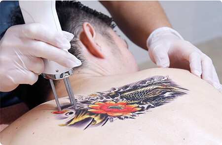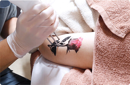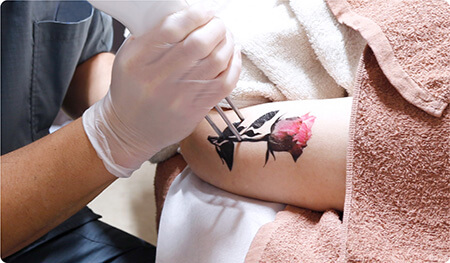 ピコレーザーは、従来のレーザーに比べてタトゥー・刺青のインク(色素)をより細かく粉砕することができるため、綺麗にタトゥーを消すことができます。