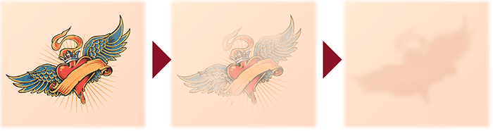 従来のレーザーでは色素の粒子が大きい手彫りのタトゥーにしか反応できませんでしたが、ピコレーザーは照射スピードが従来のレーザーの1000倍となり、照射パワーが大幅に増加したため、細かい色素が細かく砕けるようになり、機械彫りのタトゥー(ファッションタトゥー)も除去が可能となりました。